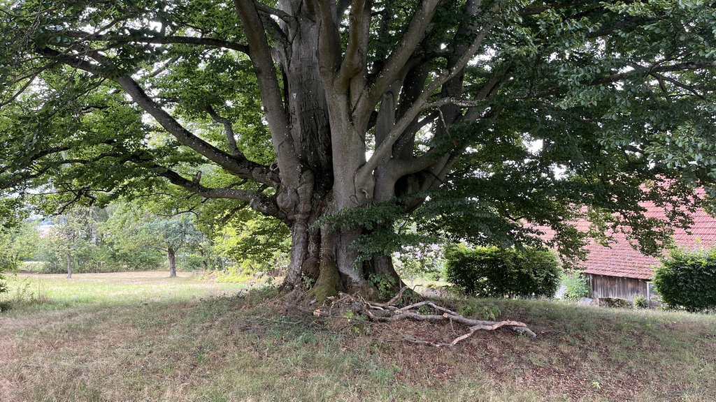 Am Ortsrand von Schönderling steht das Naturdenkmal "Hannese-Buche". Beindruckend diese Ausmaße.