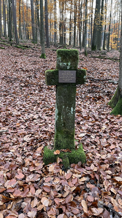 Am 2. Mai 1907 wurde hier Anton Rölling im Alter von 13 1/2 Jahren von einer Buche erdrückt..
