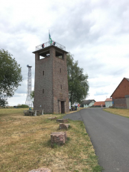 Weiter zur Geishöhe bei Dammbach. Es ist der höchstgelegene und dauerhaft bewohnte Ort im Spesart. Auf dem 521 m hohem Berg gibt es nicht nur eine Gaststätte, sondern auch den Ludwig-Keller-Turm mit einer (bei gutem Wetter) hervorragenden Rundumsicht. Als wir dort waren behinderten Dunst und Wolken die Weitsicht.