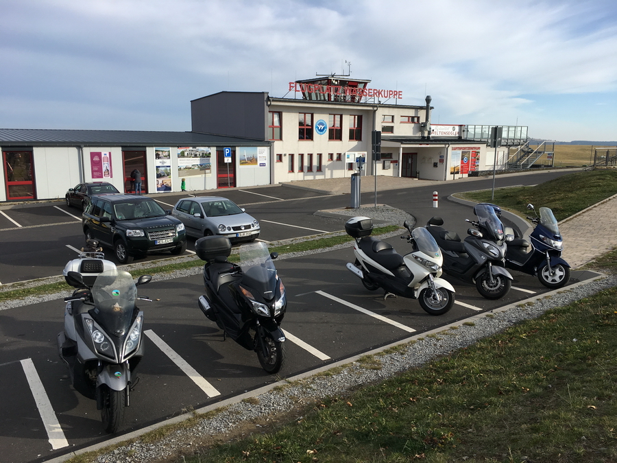 Über die B 279 nach Gersfeld und dann über die B 284 in Richtung Wasserkuppe. Wir fünf waren um die Mittagszeit die einzigen Zweiradfahrer auf Hessens höchstem Berg.